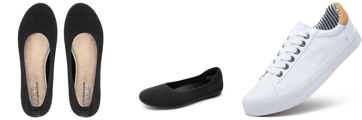 1. CHIN·MOON Women’s Slip On Walking Flats Breathable Soft Knit Travel Ballet Shoes (Black Color